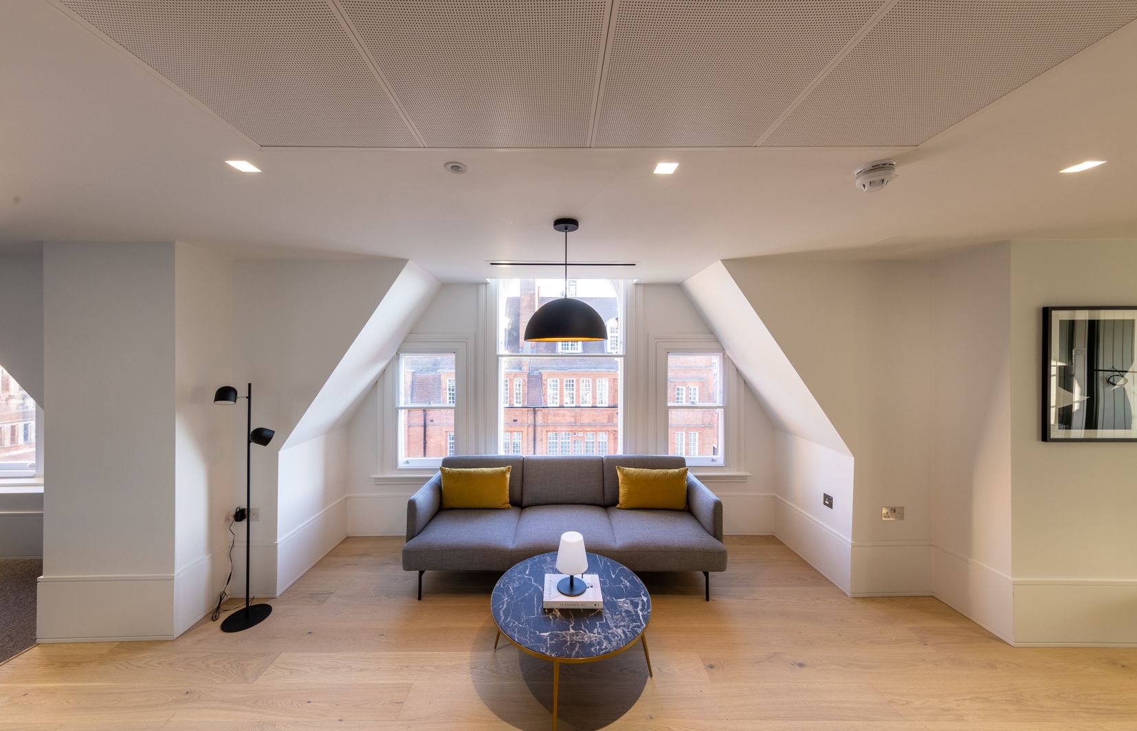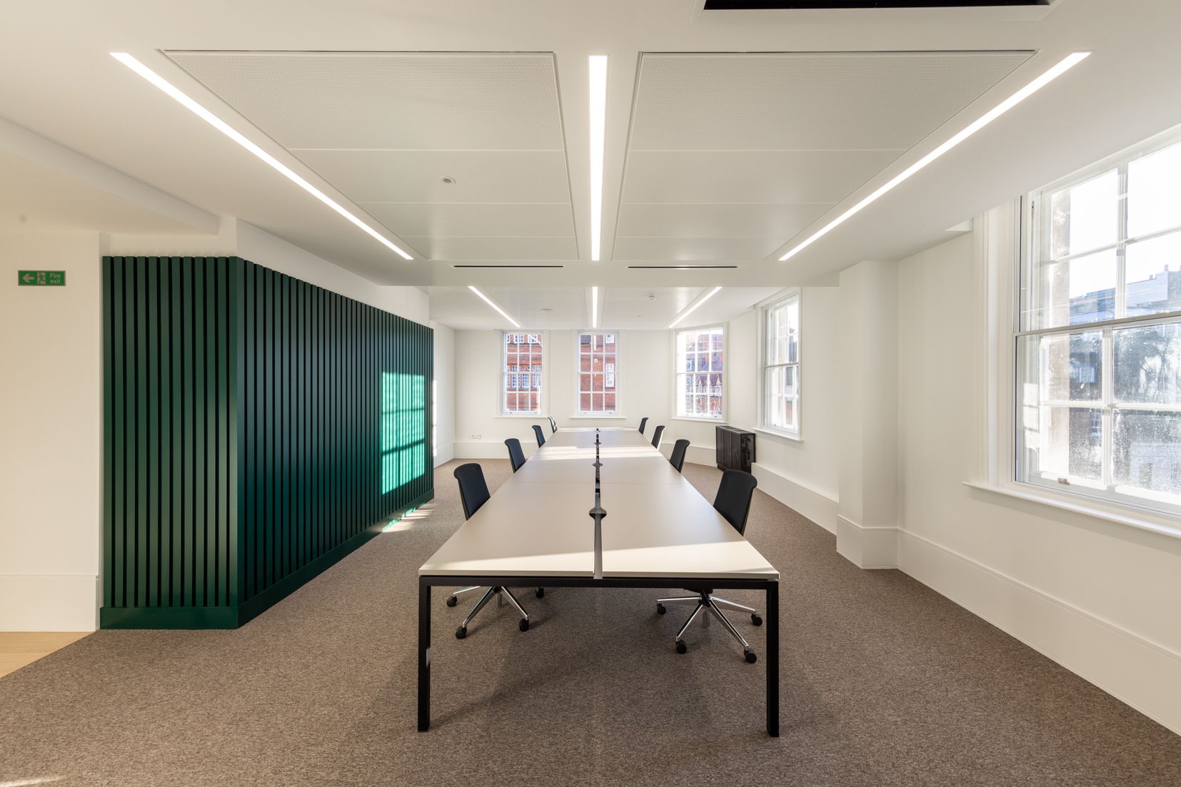 Built in 1886–1887, the properties were sensitively upgraded to improve thermal performance and support Grosvenor’s sustainability goals. Works included a new roof, restorative repairs to the external fabric and the careful retention of original façades and sash windows. Internally, extensive structural alterations reshaped the building: the rear lightwell was infilled, a new core and staircase were introduced to provide step-free access, and services were entirely renewed. A communal terrace featuring biodiverse green walls further enhances wellbeing and amenity.
