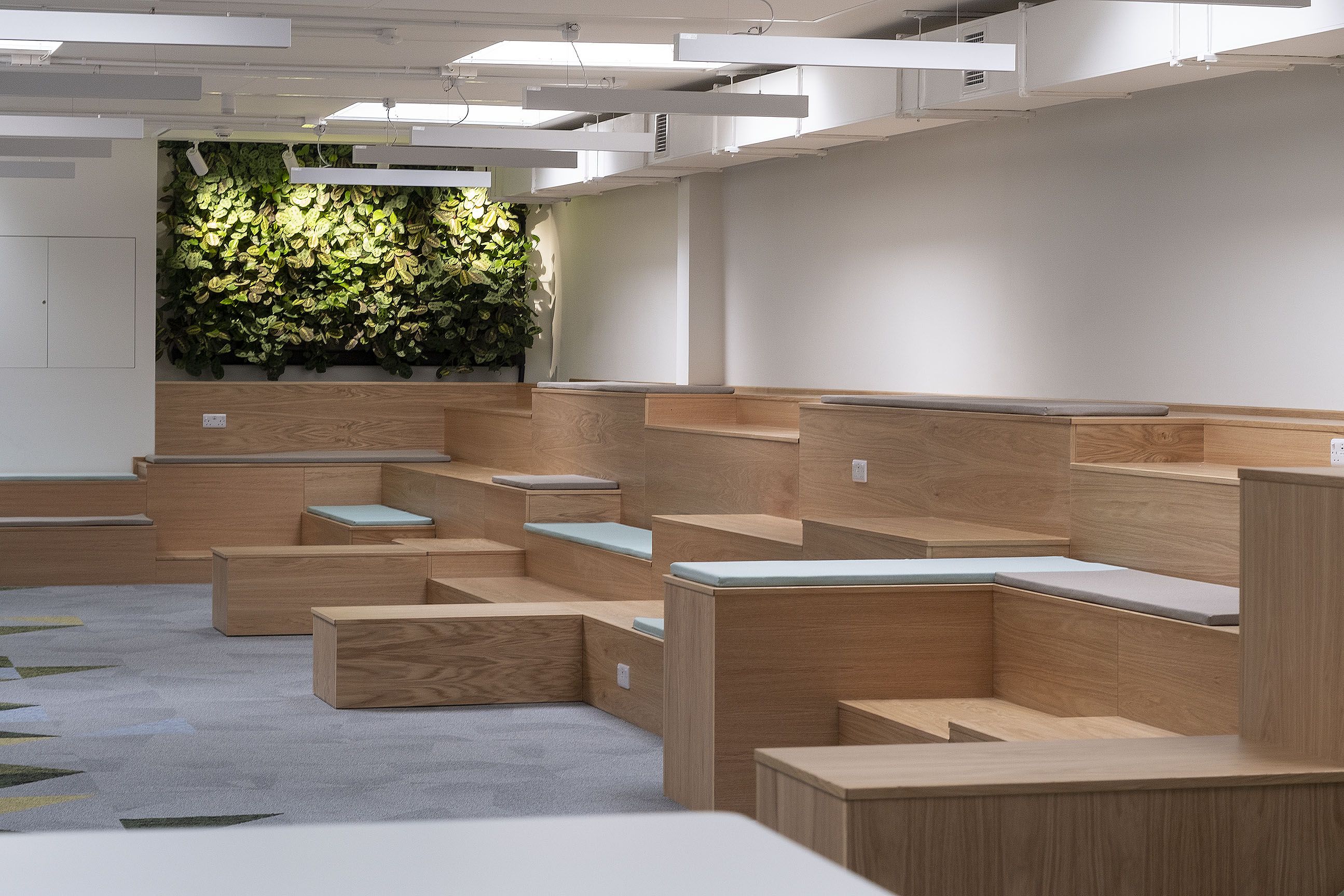 At its heart is a new common room with tiered bleacher seating, a bio-farm green wall, presentation space and quiet zones, alongside a new reception, kitchen, canteen and refined classrooms, creating an environment that supports creativity, wellbeing and academic progress.
