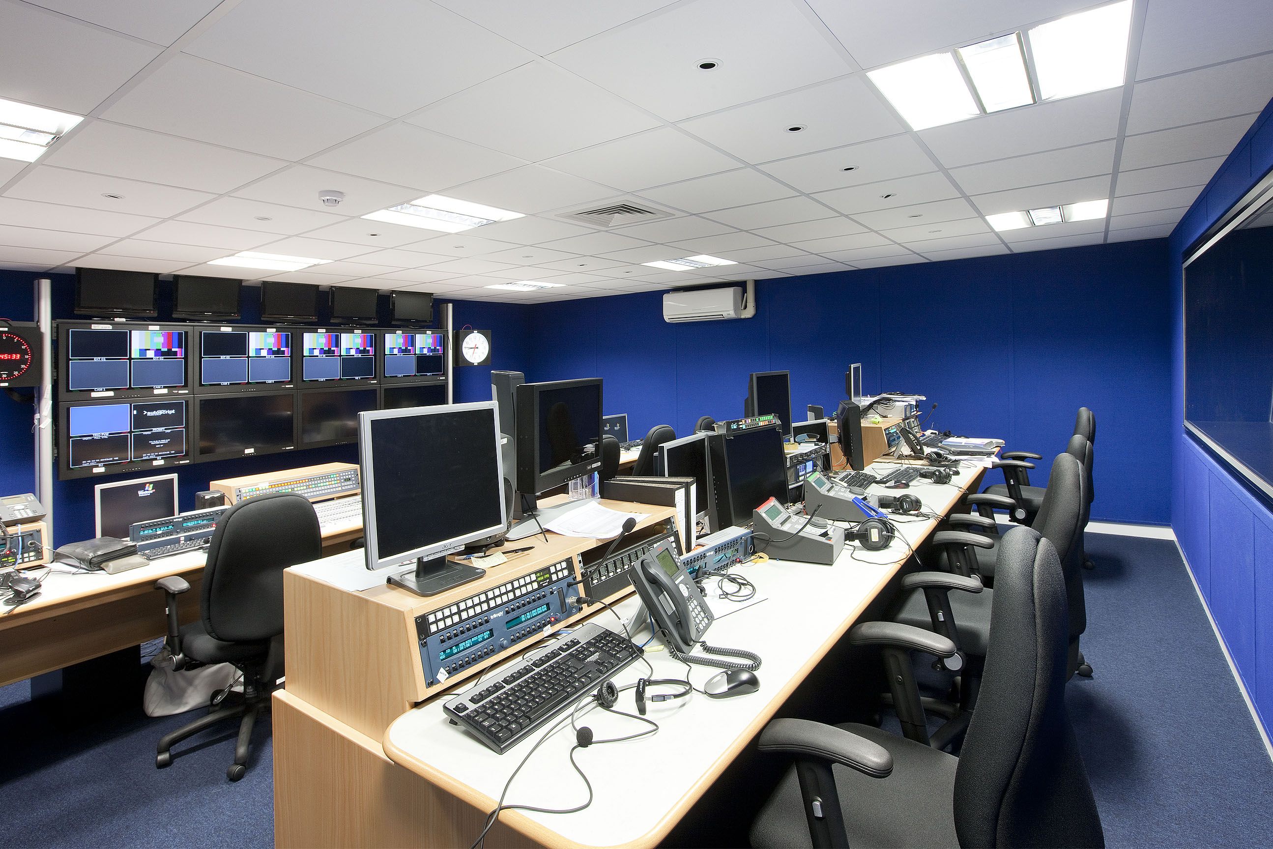 Key works focused on achieving high sound‑reduction performance through specialist acoustic walling, doors and panels, alongside a seamless resin floor finish to support smooth camera movement. A full suite of back‑of‑house facilities was also delivered, including sound, lighting and production rooms, green room facilities and dressing rooms. New mechanical, electrical and data installations support each area, complemented by a dedicated communications room housing new servers to ensure reliable studio operation.