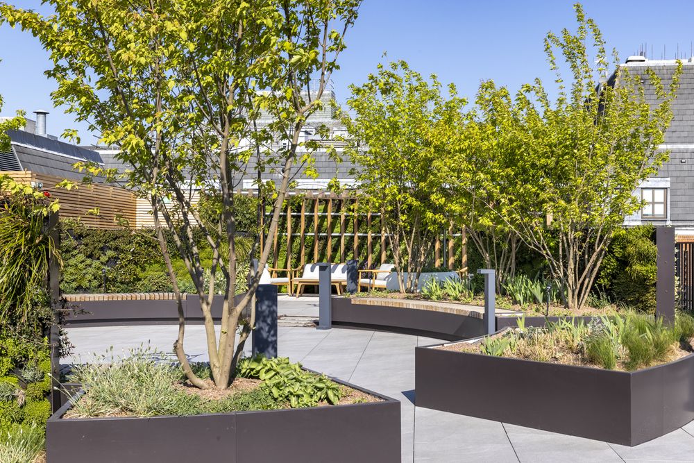 The project includes a full Cat A refurbishment of the fourth floor, along with light‑touch upgrades to WCs, stair cores and end‑of‑trip facilities. New timber flooring, bespoke joinery and a refined material palette shape a premium reception experience, while the extended lift system provides level access for the first time. Above, the 4,000 sq. ft roof terrace offers curated landscaping, timber seating and panoramic views across London. With upgraded building services and strong ESG performance, Ryder Court now delivers high‑quality workspace for modern occupiers.