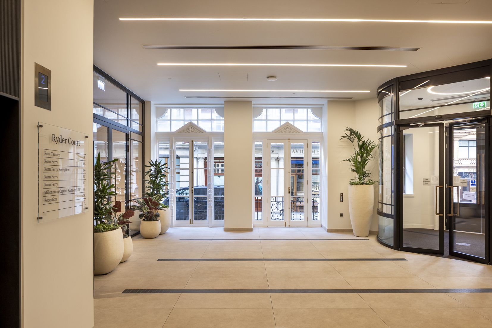 We have transformed Ryder Court into a contemporary workspace through a comprehensive refurbishment of the reception, fourth floor and rooftop levels. The scheme introduces an extensive landscaped roof terrace, one of the largest in St James’s, alongside a renewed plant installation and upgraded heating and cooling systems to support long‑term performance. At ground level, a reconfigured and extended reception now includes the Marlborough Lounge, a refined and comfortable business lounge designed to elevate the arrival experience for tenants and create a more welcoming, high‑quality environment throughout the building.