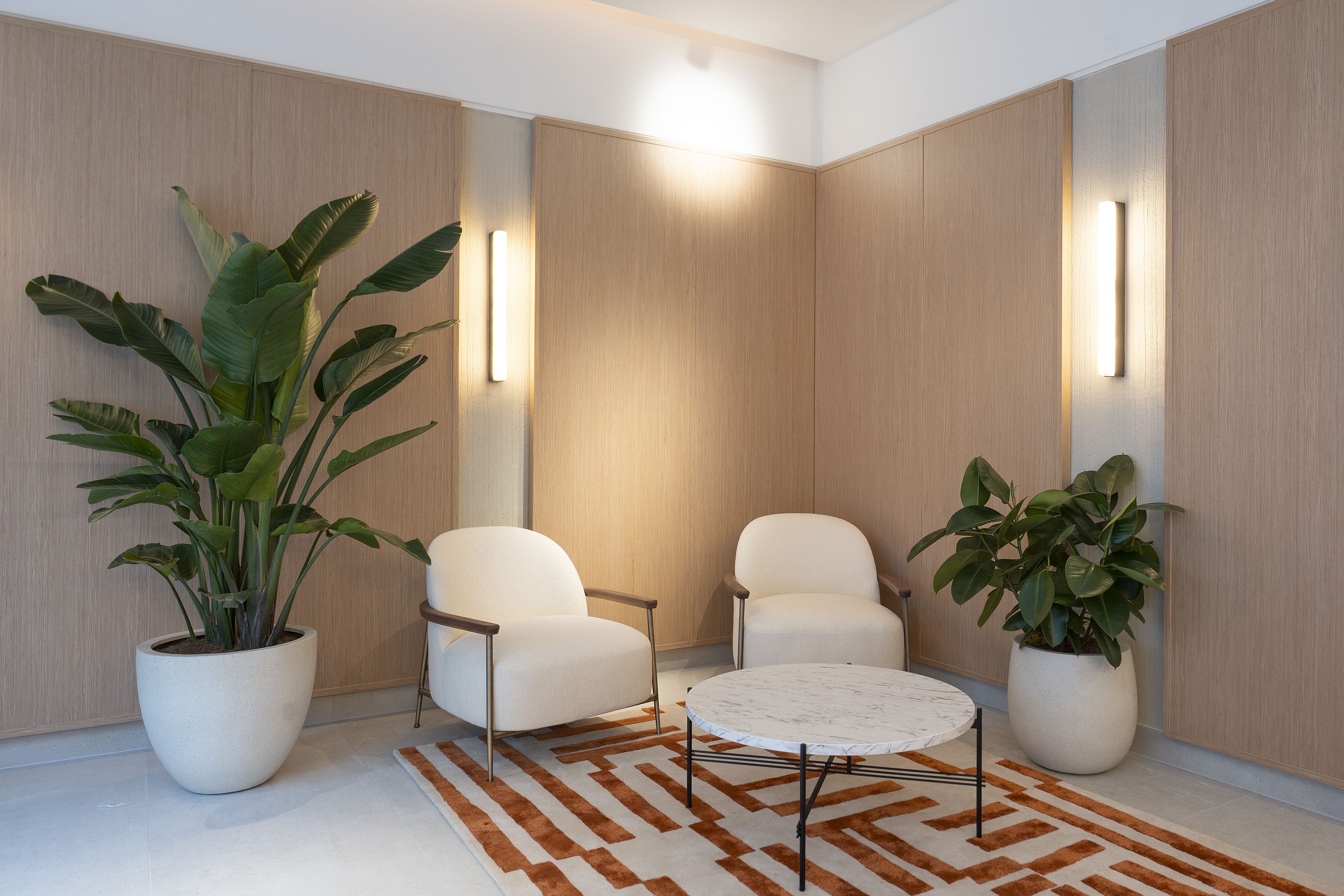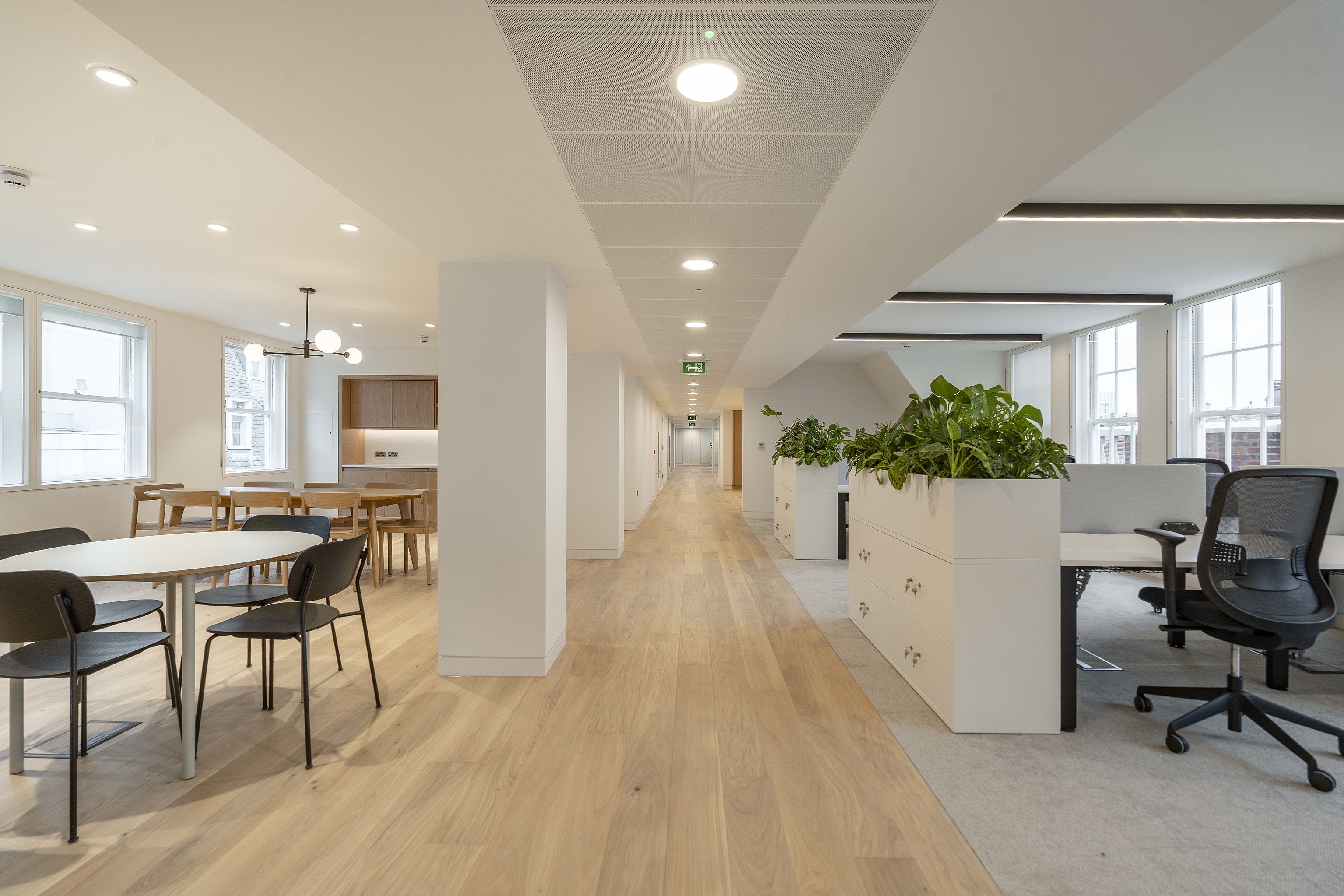 Alongside the commercial areas, two private penthouse apartments were refurbished with new timber floors, kitchens and bathrooms, aligning the residential offer with the overall building standard and strengthening The Crown Estate’s Mayfair portfolio.