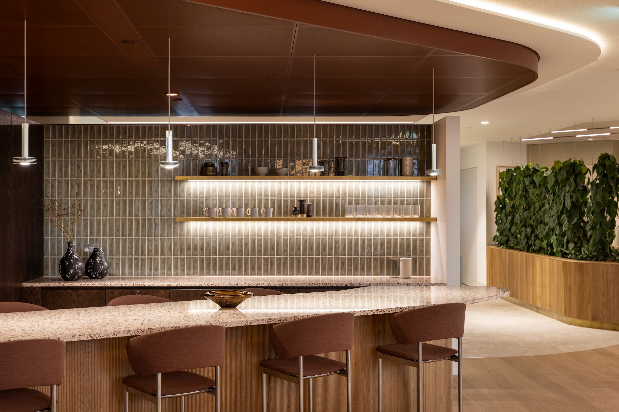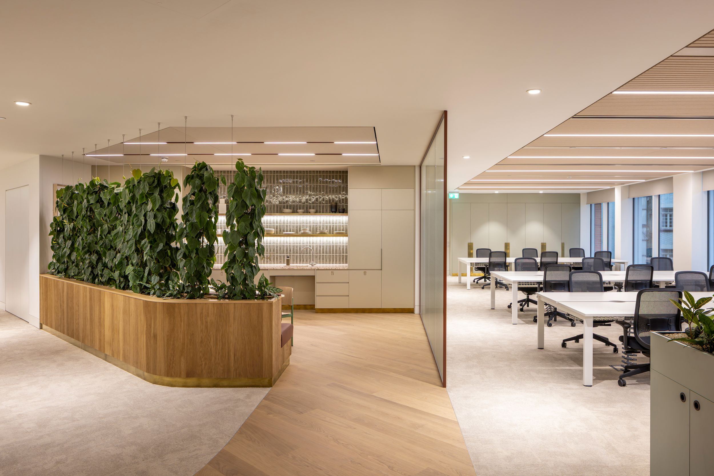 We transformed 1 Vine Street into a hospitality-led workplace defined by clarity of design, flexibility and high-quality finishes. Delivered from Stage 2 through a collaborative design and build approach, the project introduces a flexible Cat A workspace on Level 3 and a crafted Cat A+ environment on Level 4, seamlessly blending operational performance with an elevated tenant experience. Bespoke joinery, distinctive lighting, integrated planting and carefully selected materials shape a warm, contemporary setting that supports both day-to-day functionality and long-term value, creating one of The Crown Estate’s newest flagship workspaces.