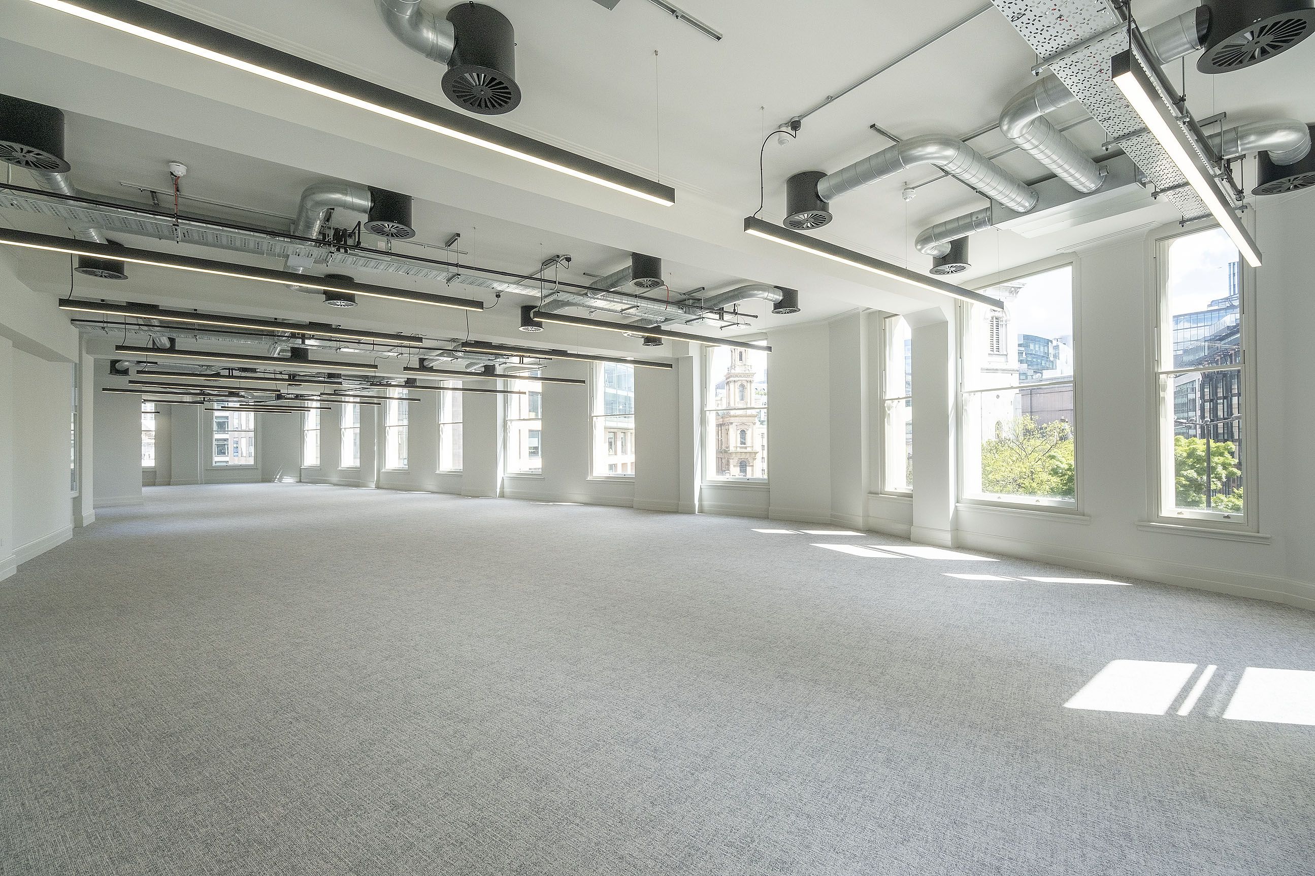 The result is a series of ready-to-occupy workspaces that combine restored architectural detail with contemporary functionality, enhancing both performance and long-term appeal within this historic City-fringe location.